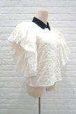 黒の襟がきっちり感を出してくれて、上品で清潔感のあるトップスに。