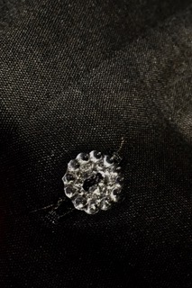 後ろ姿はギャザーとタックがハンドステッチで結ばれています。