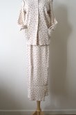 小花柄のプリントを施したリブニット生地で仕立てたカーディガン。生地メーカーさんの資料から選んだ小花柄を、kéngo別注カラーでリブニットにプリントしていただいたオリジナル生地を使用。柄は4色で構成。位置がずれない様に1色ずつ顔料インクでスクリーンプリントを施すことで繊細な柄が表現された丁寧な職人技が光るプリント柄。