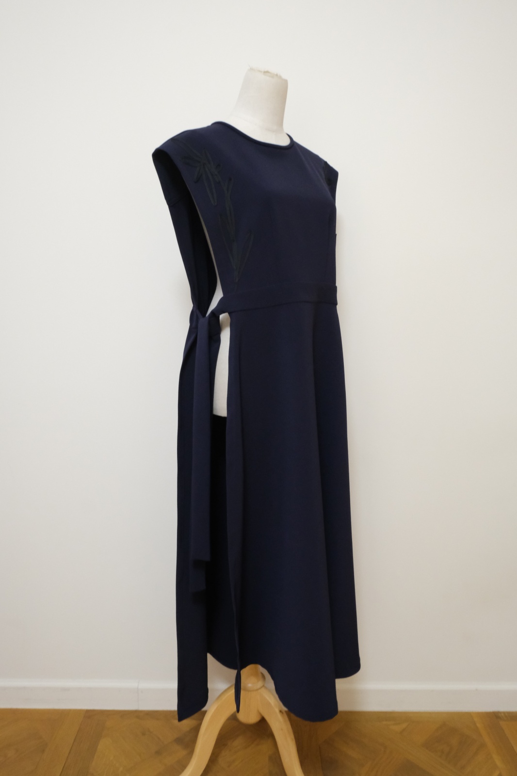 サイドはリボンで留めるだけですが、ウエスト位置は少し上の方にありズドンとした印象にはなりません。