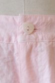後染めしたピンクは染めならではの柔らかな表情。製品染特有のムラの表情に愛おしさを感じ、赤のステッチに心がはずみます。