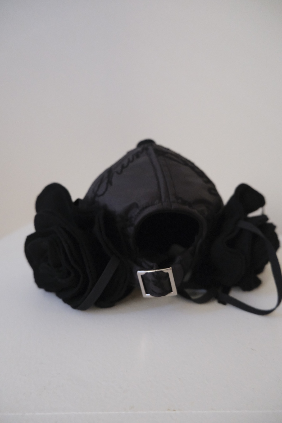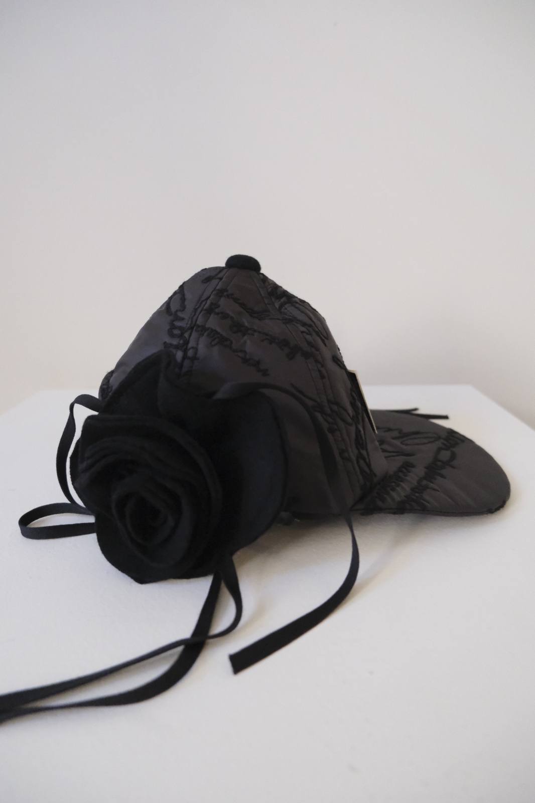 耳元にはバラのコサージュが付いた、特別感のあるキャップに仕上がっています。