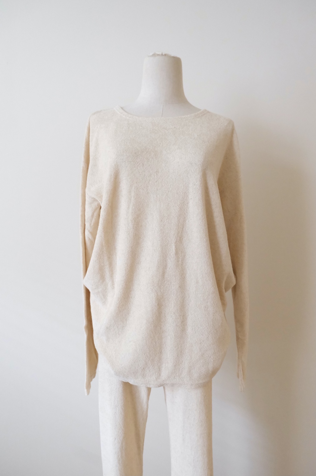同素材のレギンスとセットアップでルームウェアとして着用していただくのもおすすめ。