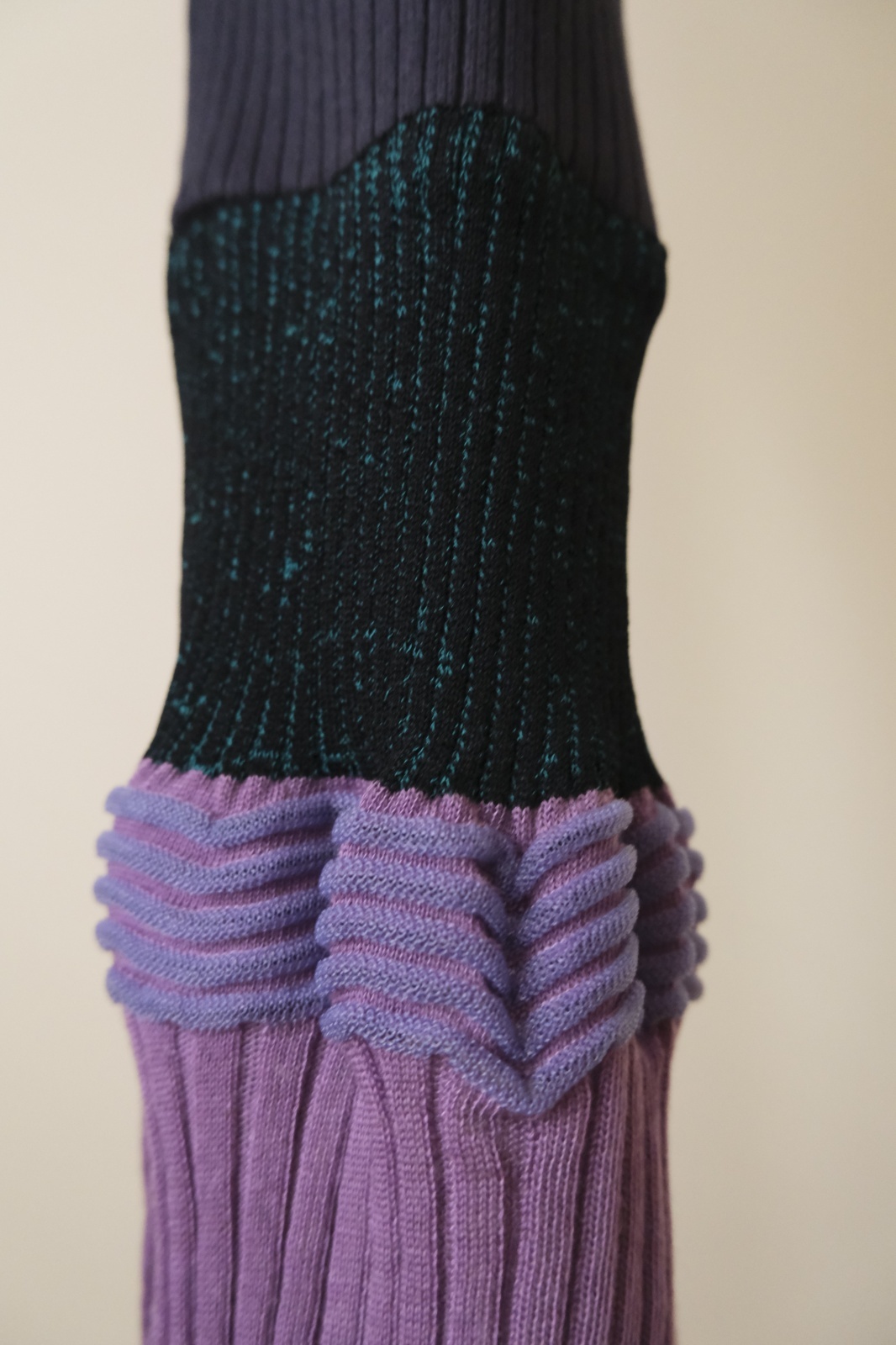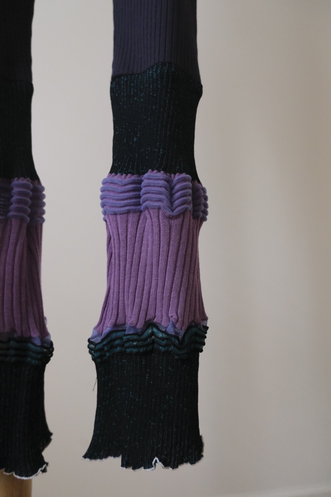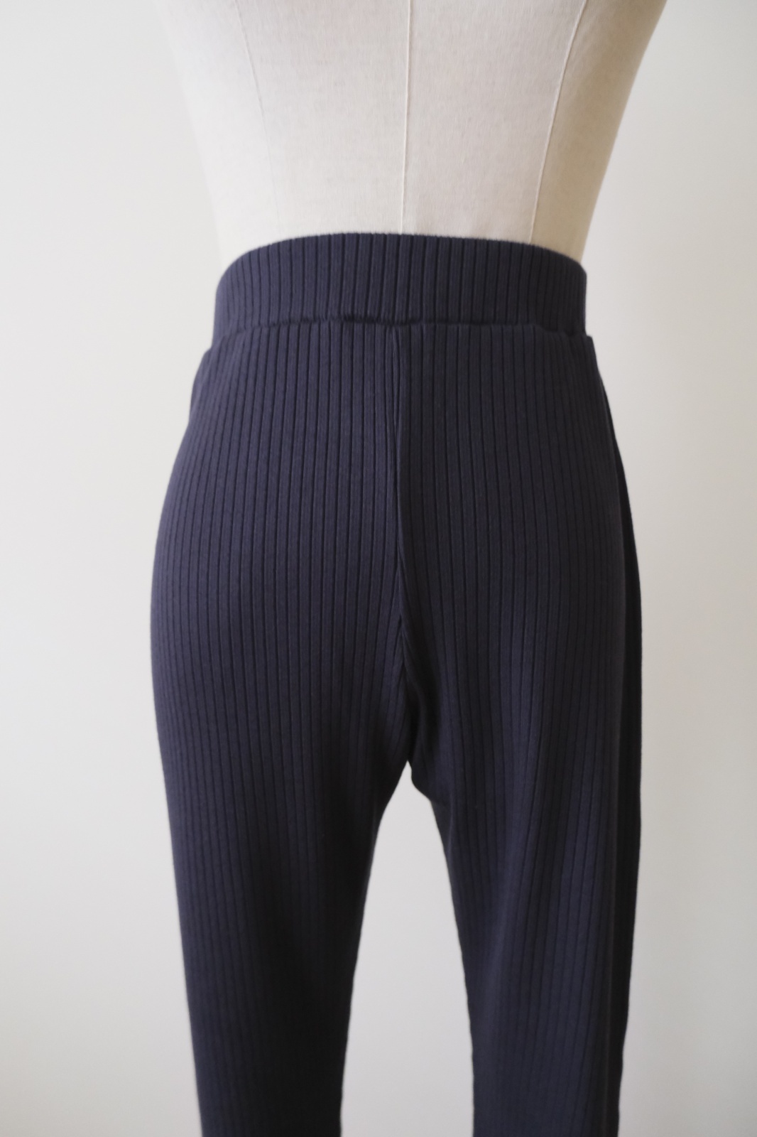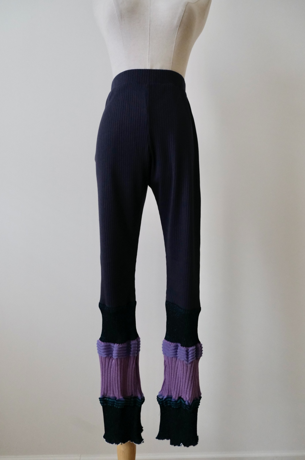 シンプルなボディに、鮮やかな印象の裾が印象的なレギンスパンツ