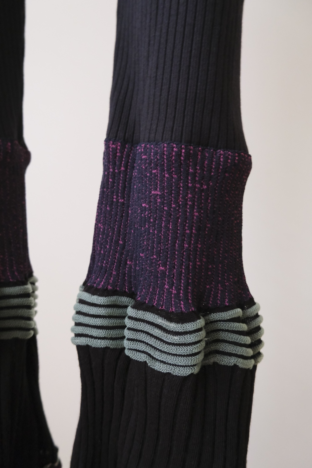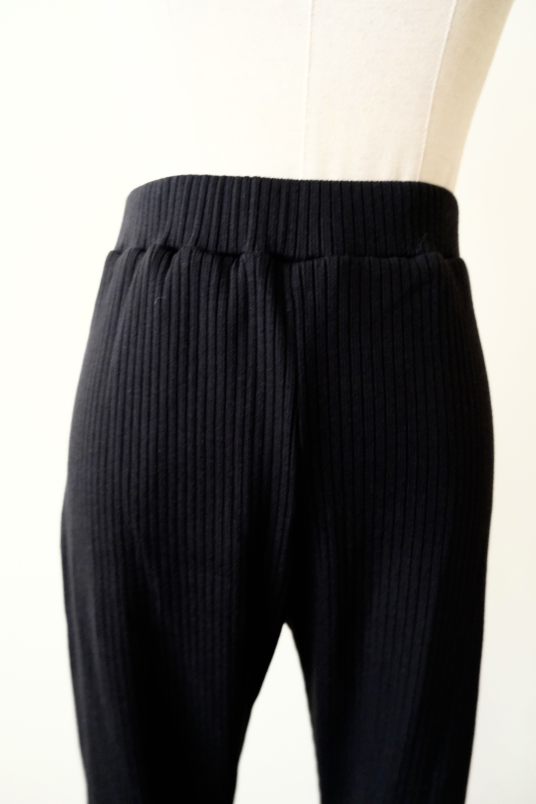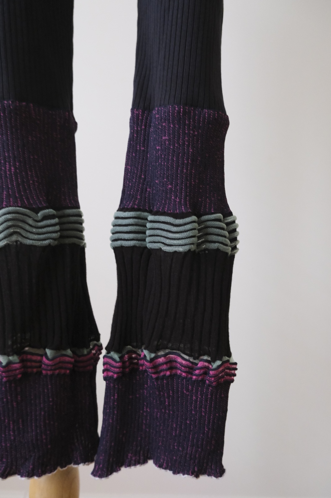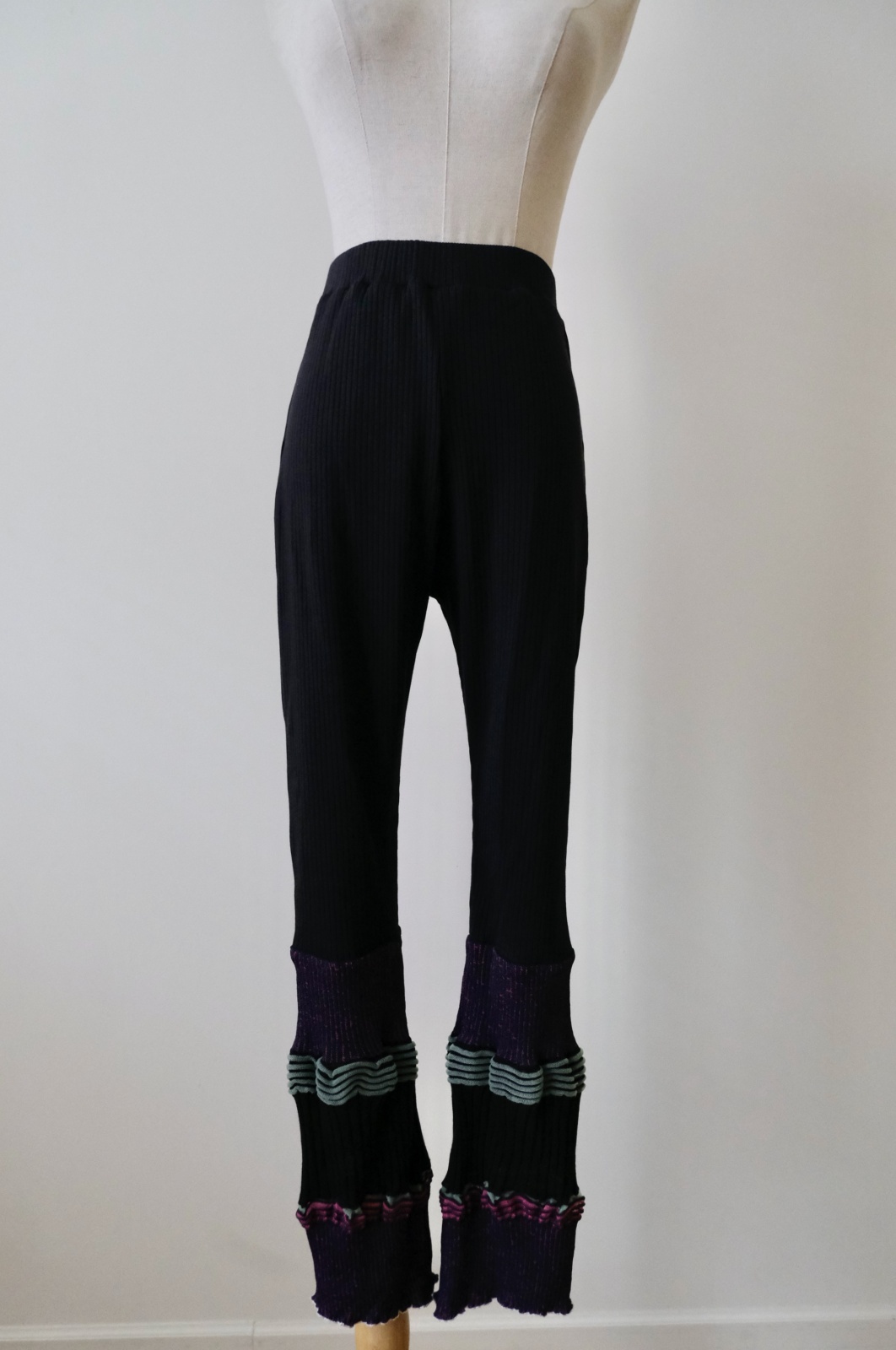 シンプルなボディに、鮮やかな印象の裾が印象的なレギンスパンツ