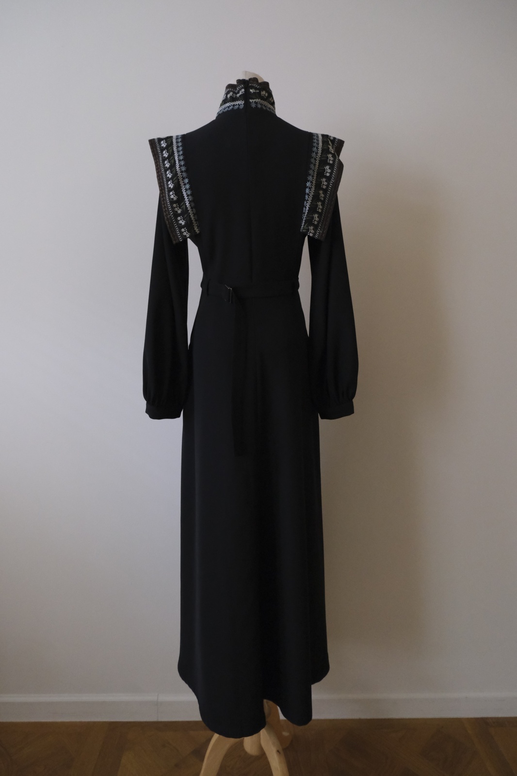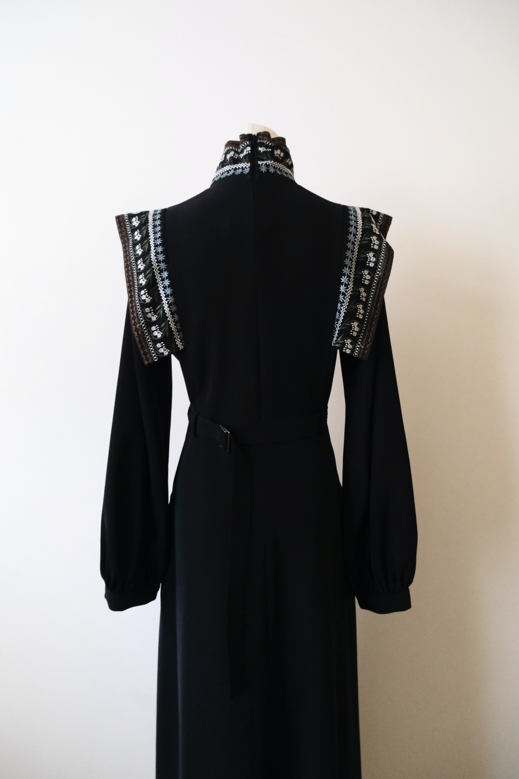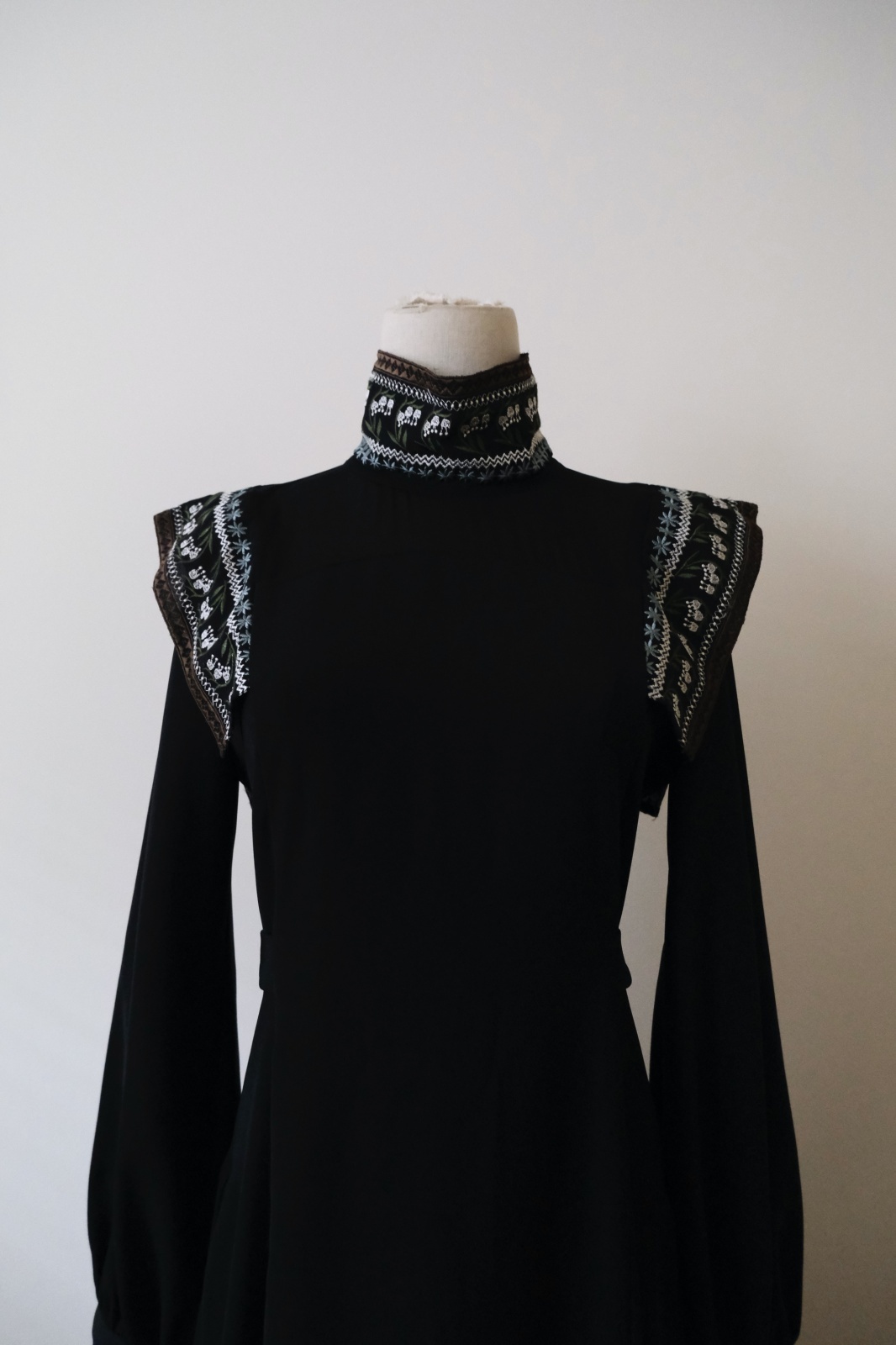 黒のスッキリとしたドレスに鈴蘭の刺繍が最高に素敵。
