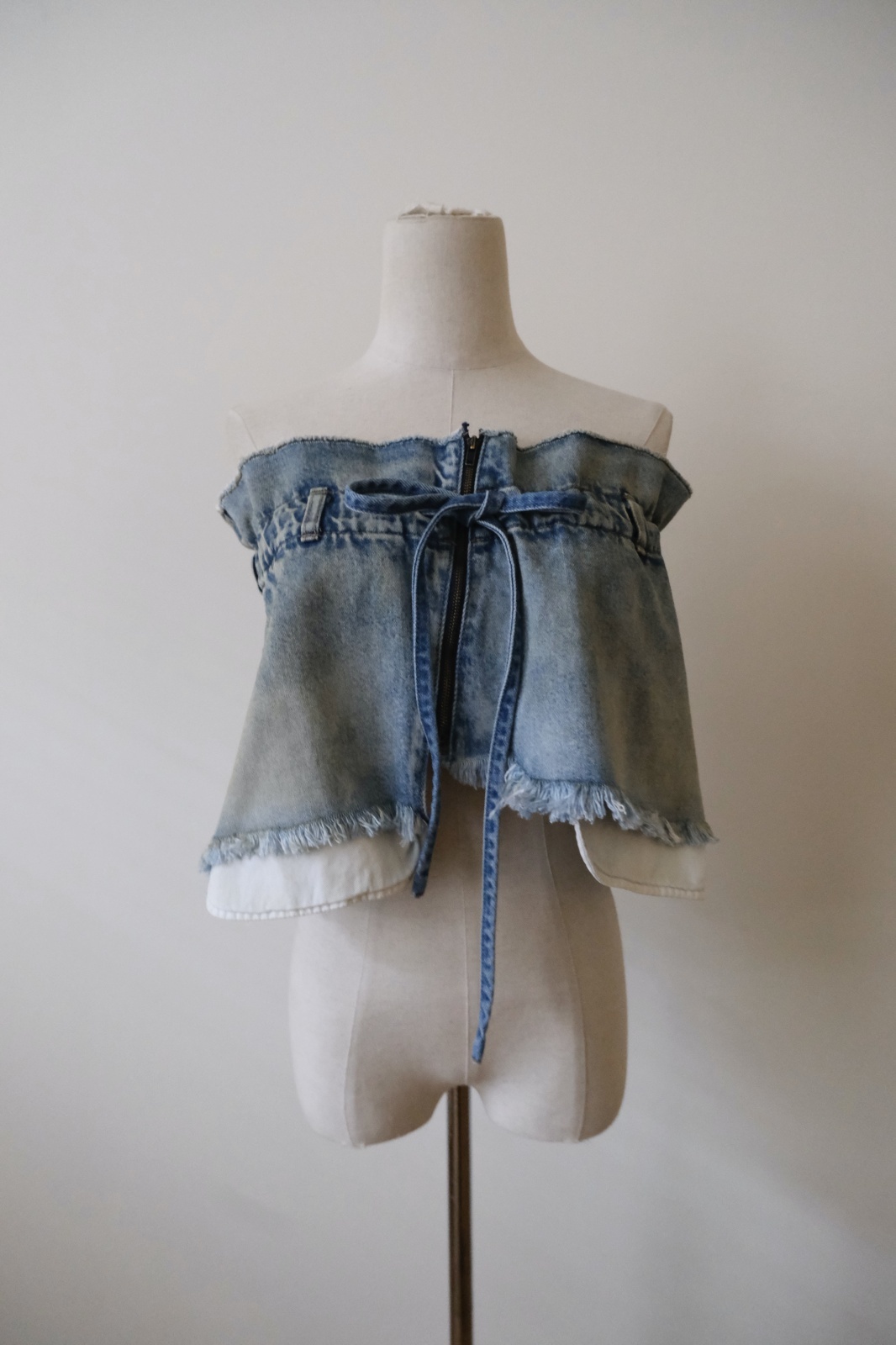 MIKIOSAKABE Mini Cut Off Denim Skirt