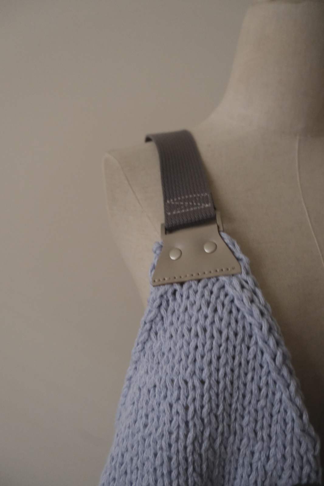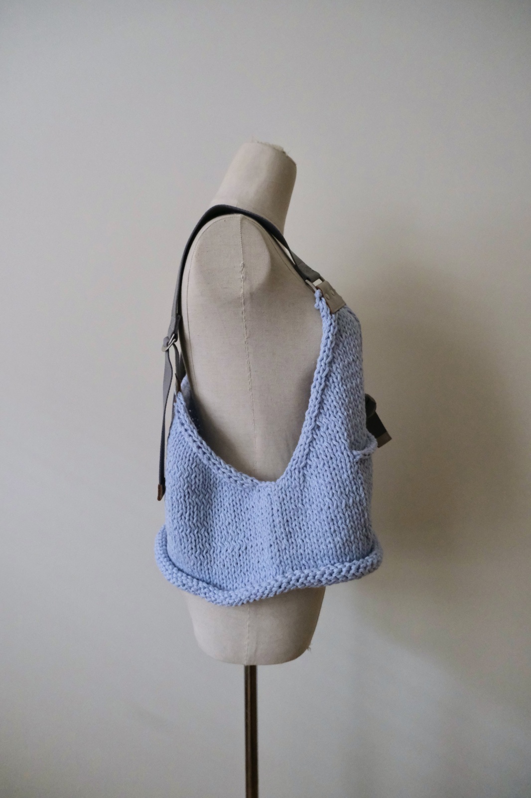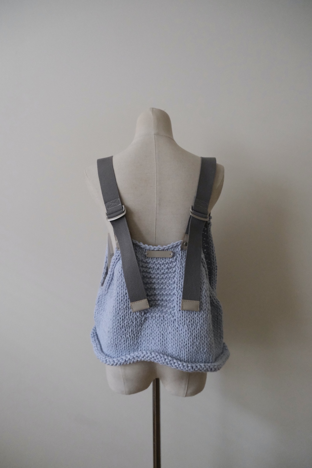相反する手編みのニットでできているという意外性がとても可愛い。