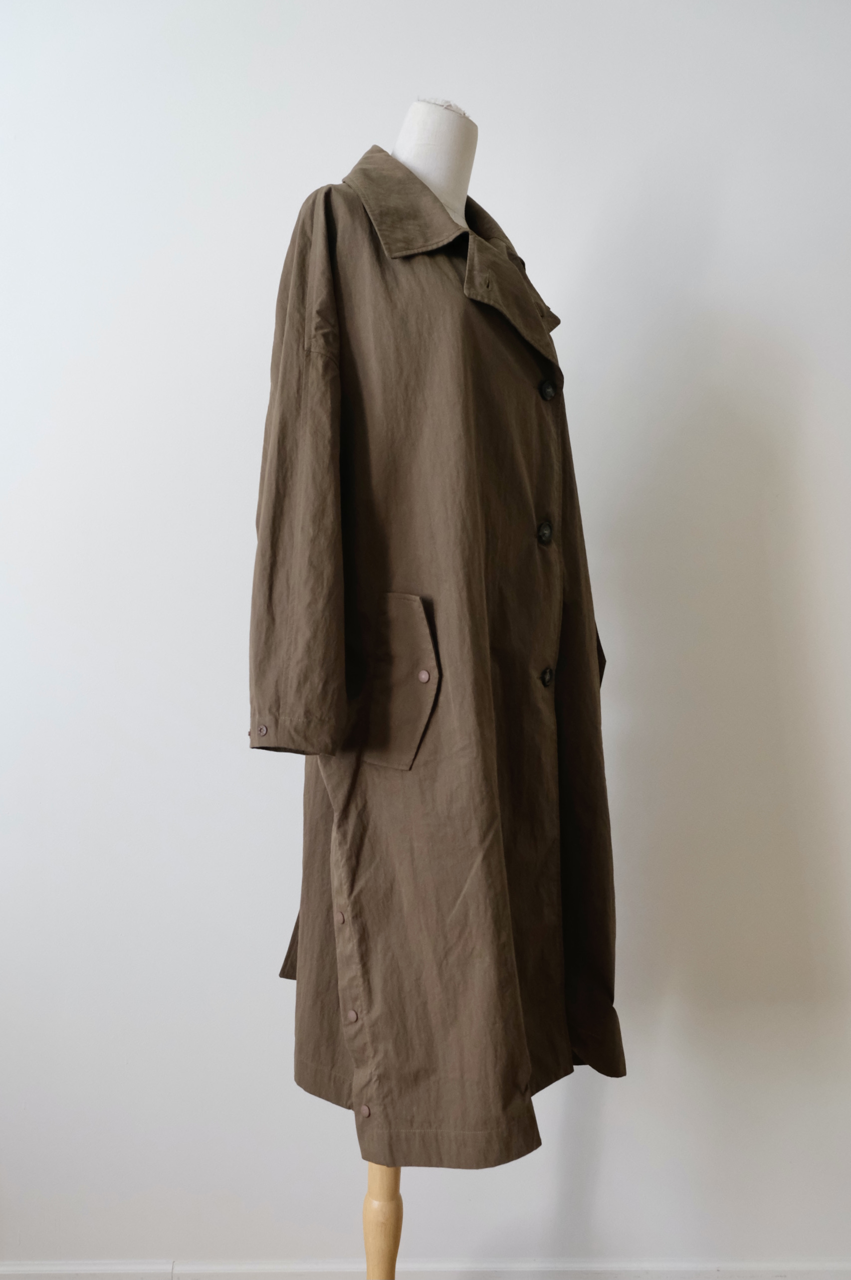 このKLOKE のトレンチは絶妙なカーキがシックで、シンプルなラインがとても使いやすいです。