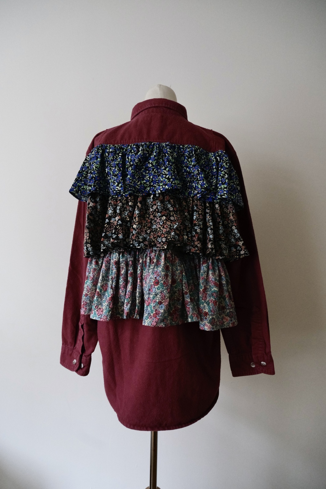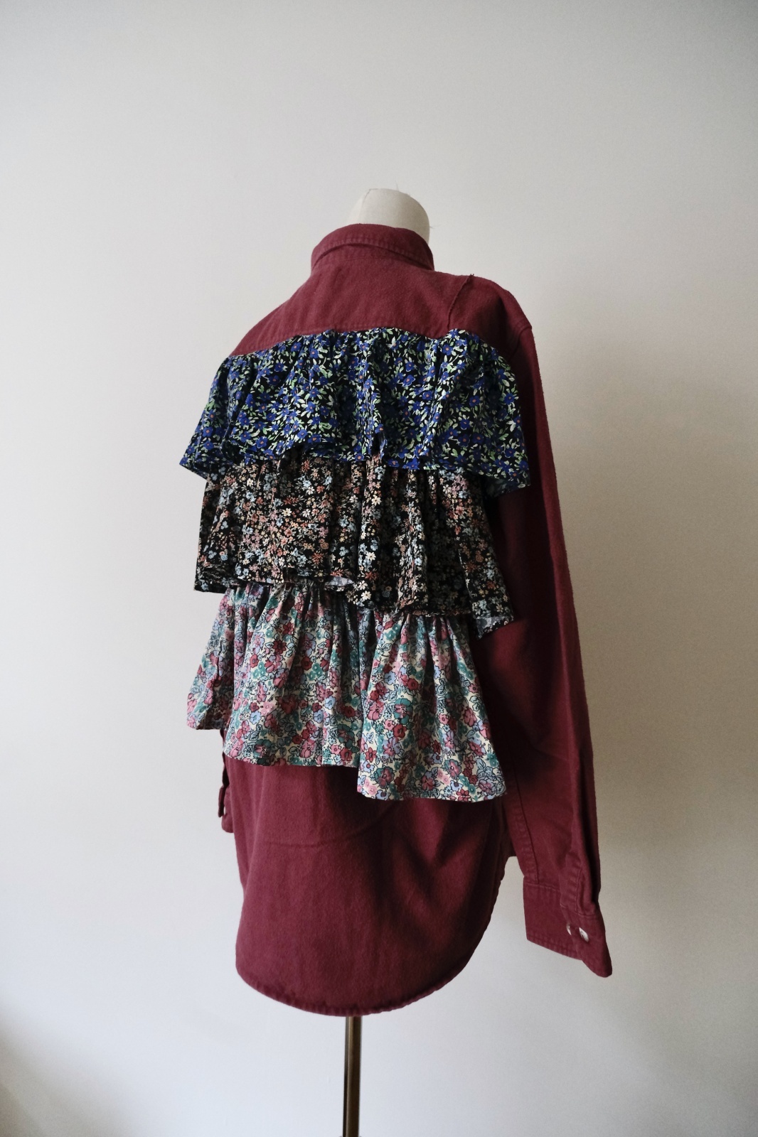無地のネルシャツをベースに背中には三段フリルをあしらったアイテムです。