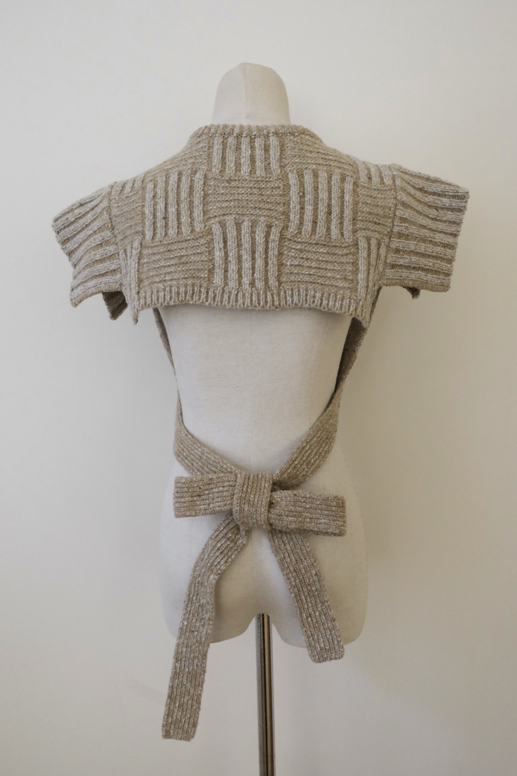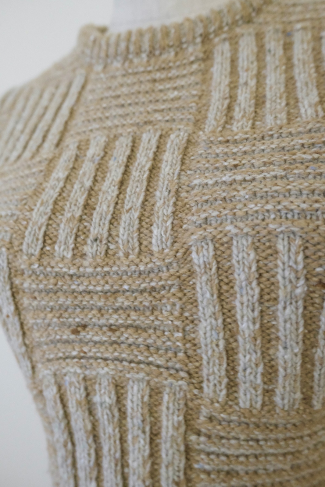 縦横の立体的な編み目ラインがブロックになったニットベストです。