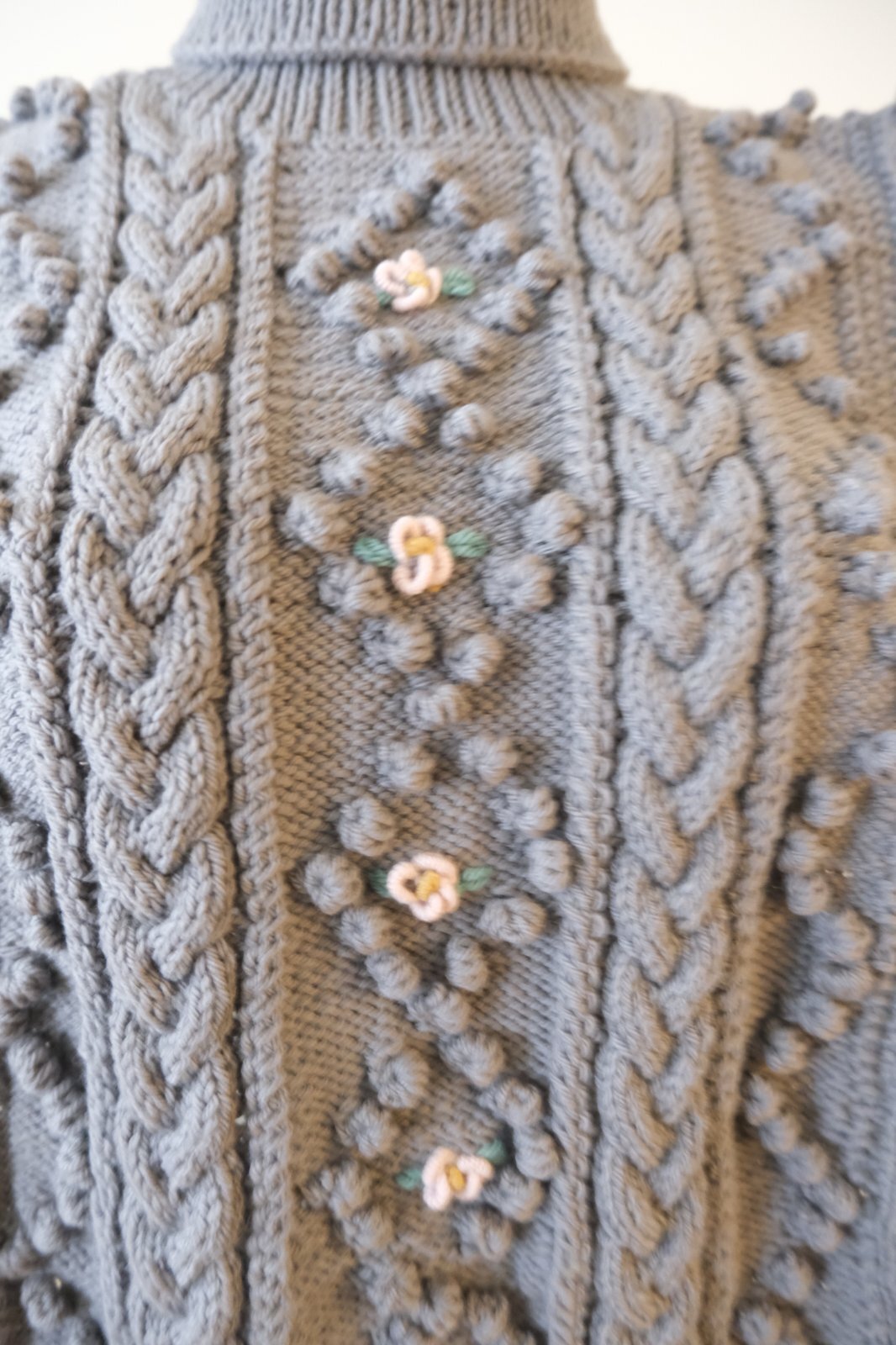 グレーにピンクのお花、編み目の立体感。あぁ、至福の可愛さです。