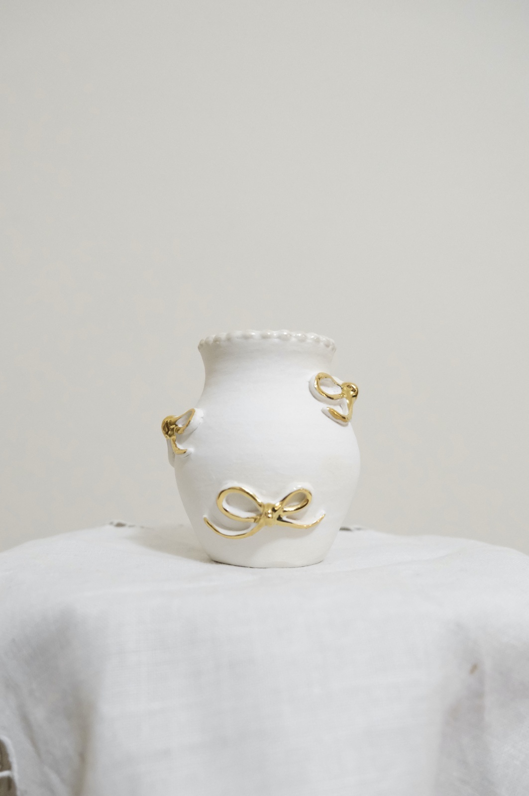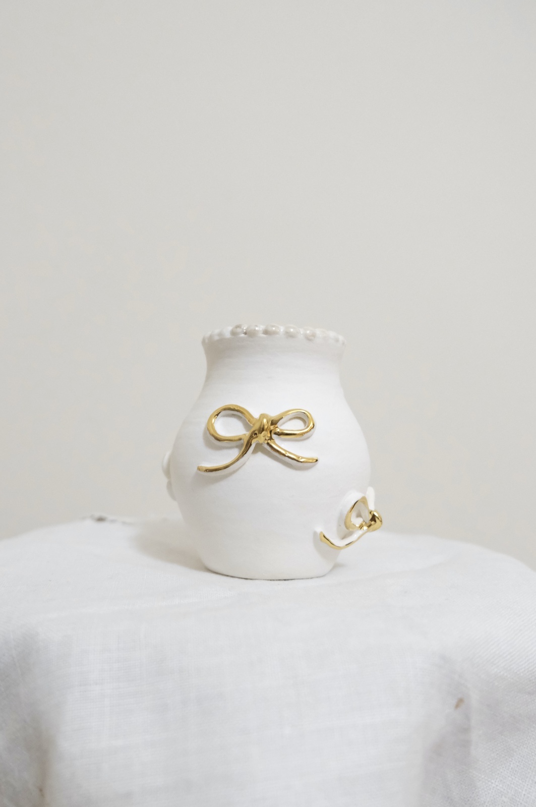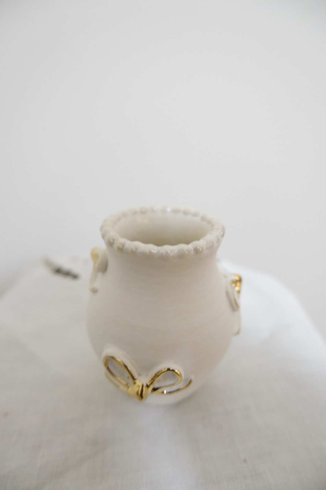 bowbowbowはたっぷりのリボンが踊る様に、見ているこちらの心も一緒に踊ってしまうようなhappyなシリーズです。年末年始のキラキラとしたホリデーシーズンも相まって、reikaさんの花器のシリーズでもお馴染みのシルエットのものもプレゼントラッピングされたようなおめかしスタイルで登場しました。