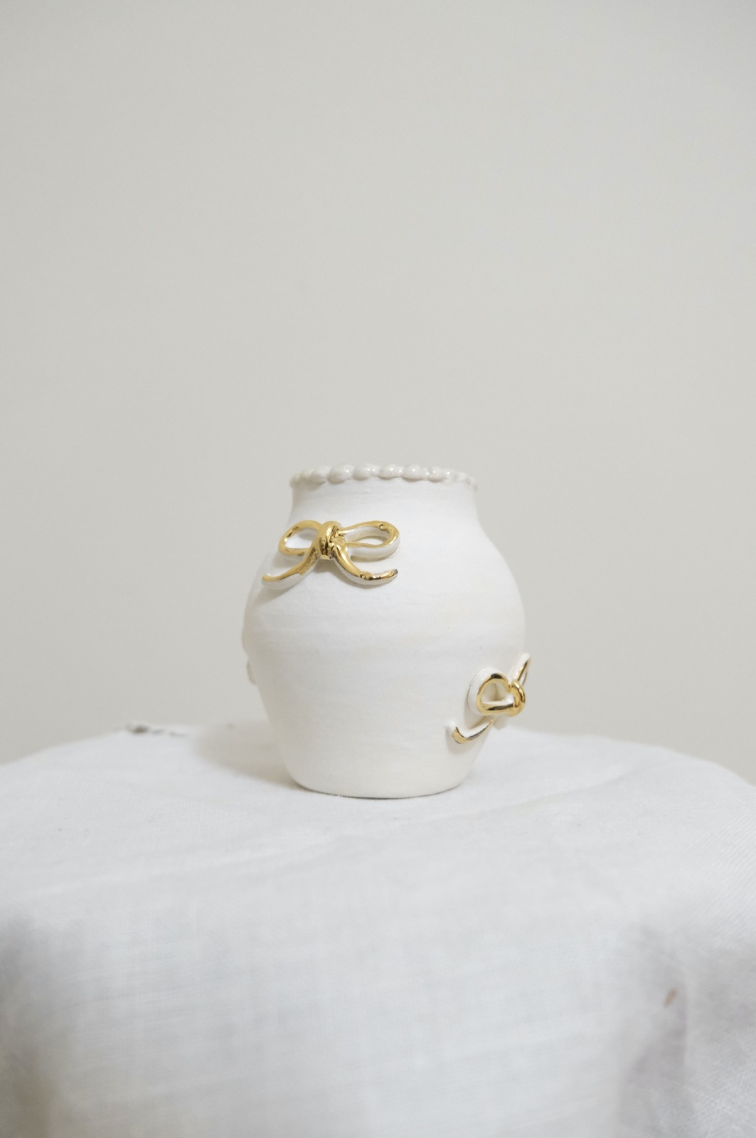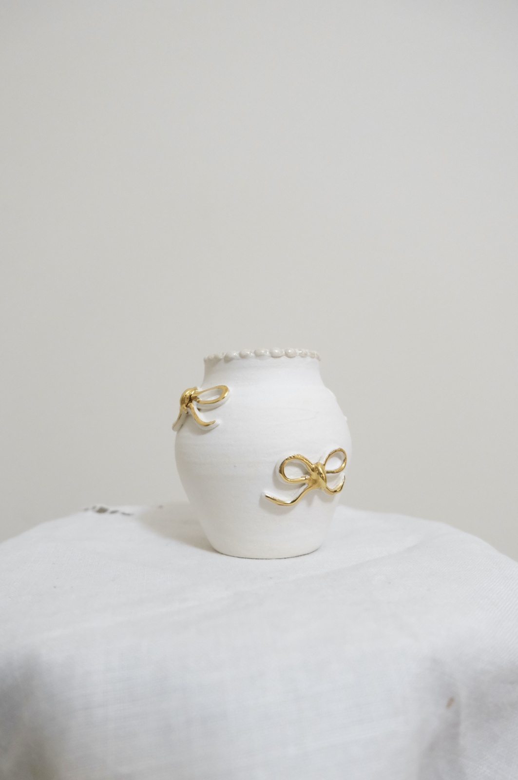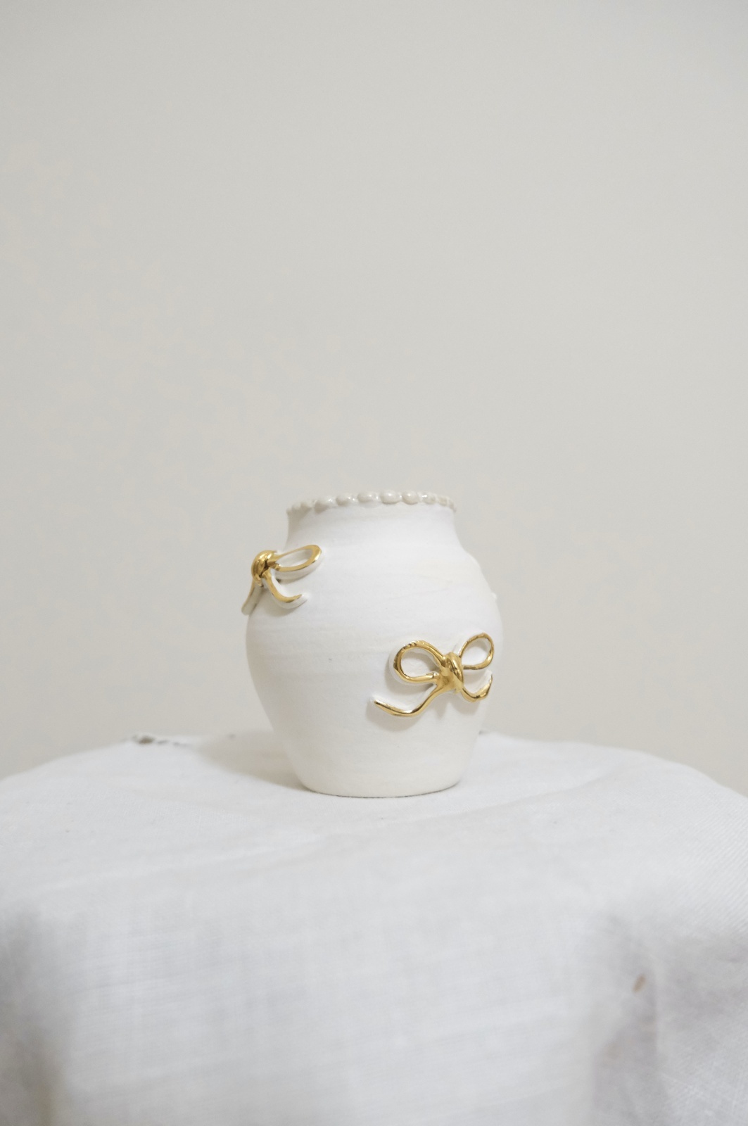 bowbowbowはたっぷりのリボンが踊る様に、見ているこちらの心も一緒に踊ってしまうようなhappyなシリーズです。年末年始のキラキラとしたホリデーシーズンも相まって、reikaさんの花器のシリーズでもお馴染みのシルエットのものもプレゼントラッピングされたようなおめかしスタイルで登場しました。