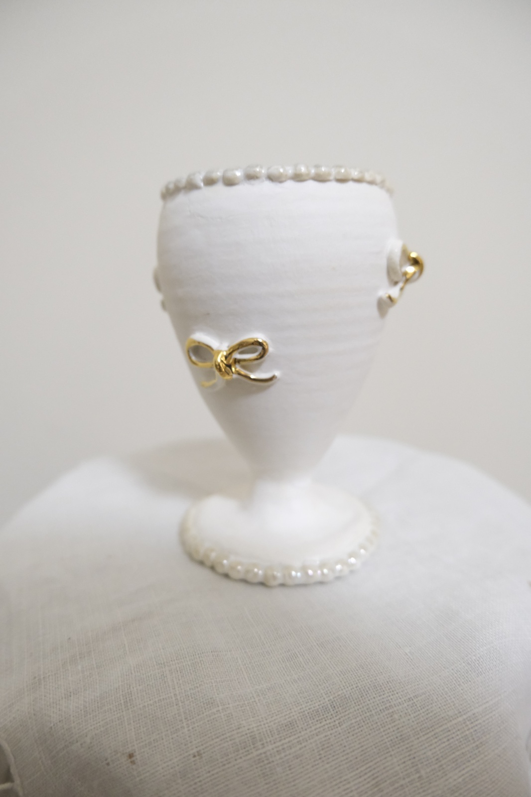 bowbowbowはたっぷりのリボンが踊る様に、見ているこちらの心も一緒に踊ってしまうようなhappyなシリーズです。年末年始のキラキラとしたホリデーシーズンも相まって、reikaさんの花器のシリーズでもお馴染みのシルエットのものもプレゼントラッピングされたようなおめかしスタイルで登場しました。