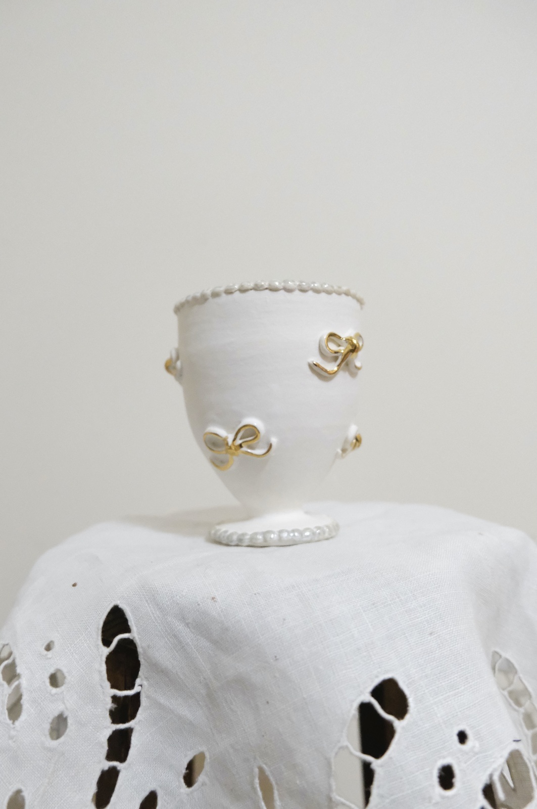 bowbowbowはたっぷりのリボンが踊る様に、見ているこちらの心も一緒に踊ってしまうようなhappyなシリーズです。年末年始のキラキラとしたホリデーシーズンも相まって、reikaさんの花器のシリーズでもお馴染みのシルエットのものもプレゼントラッピングされたようなおめかしスタイルで登場しました。