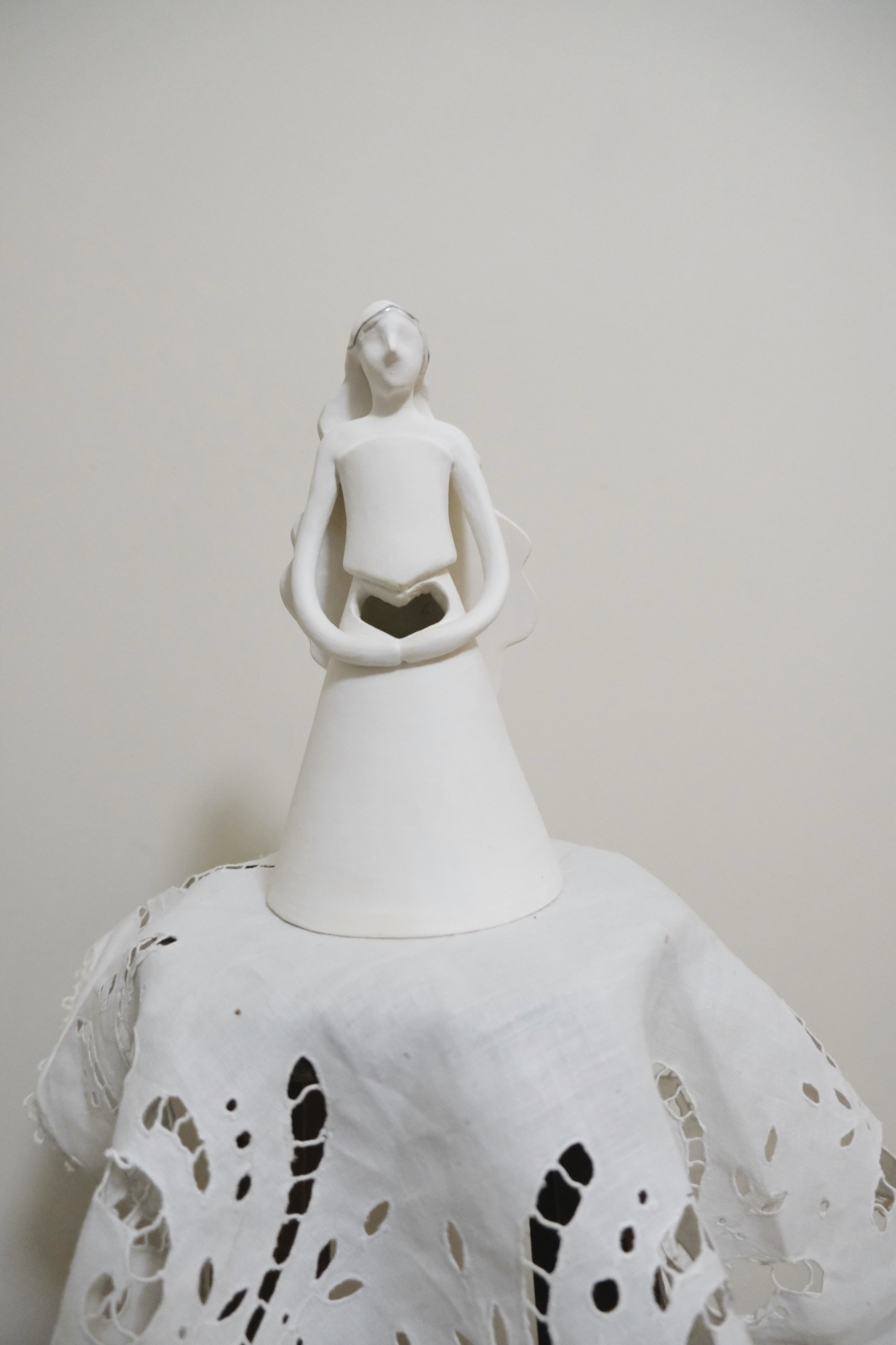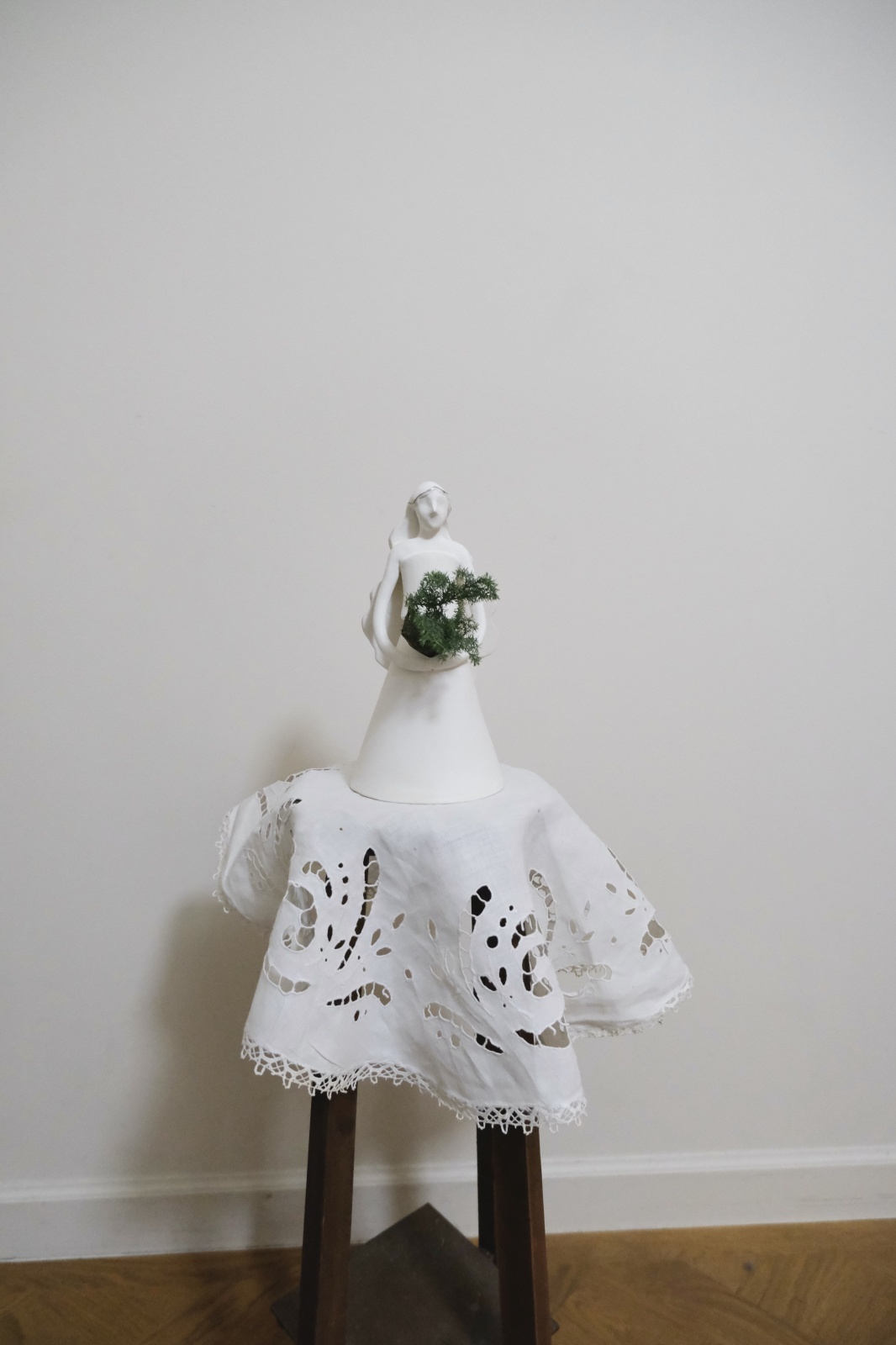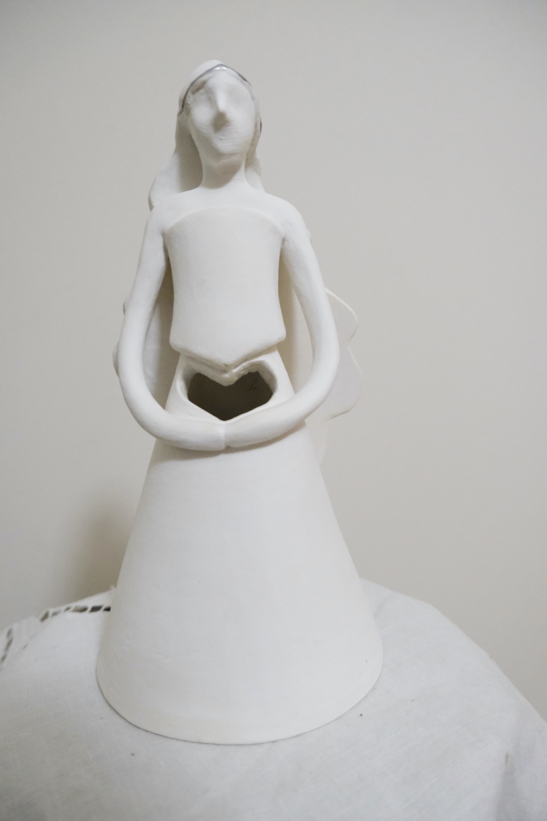 お腹のところから水や植物を入れれるので、飾るとちょうど手にお花を抱えたようになる。