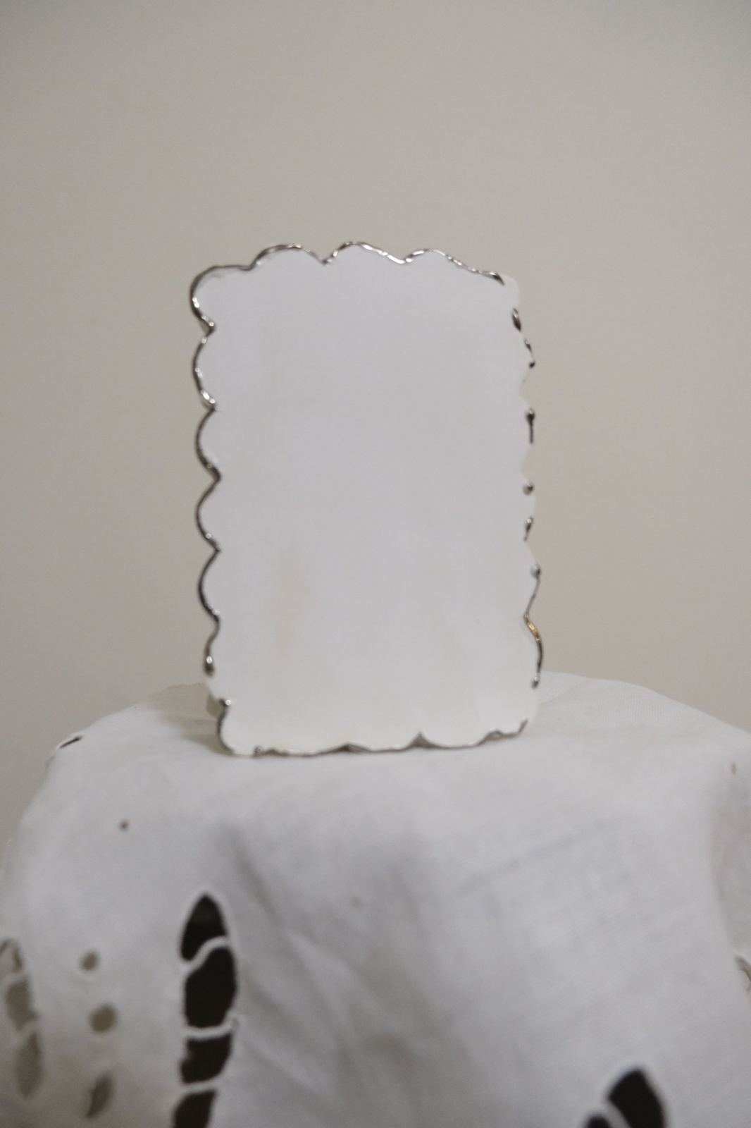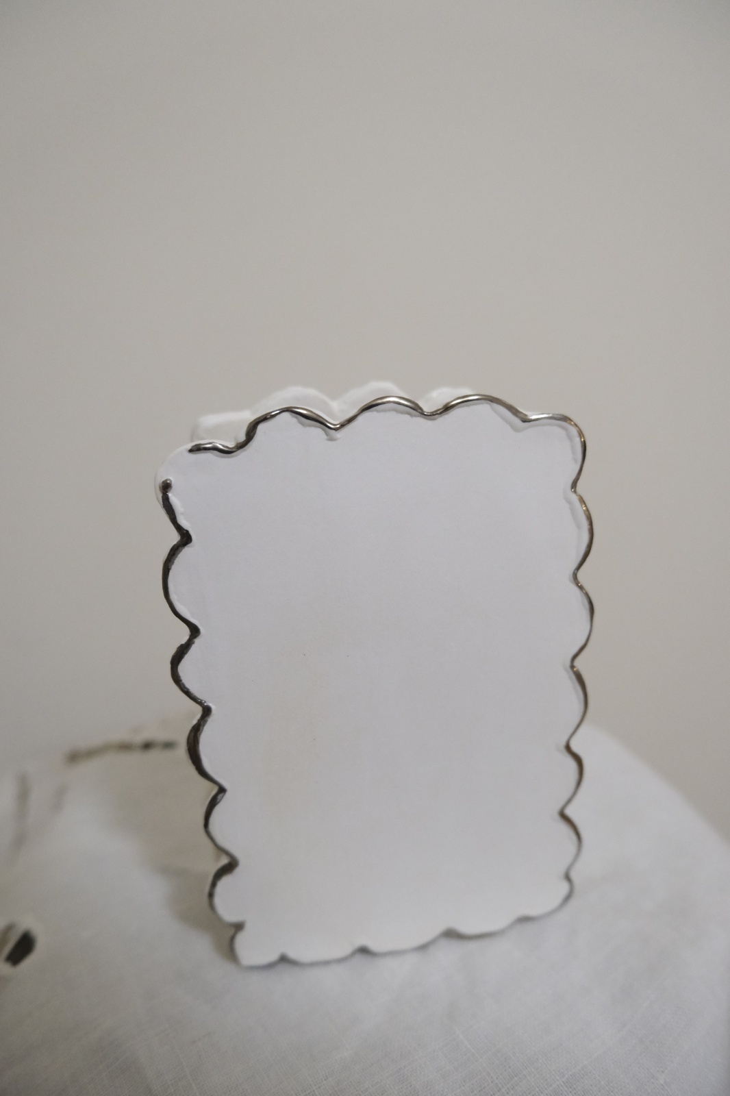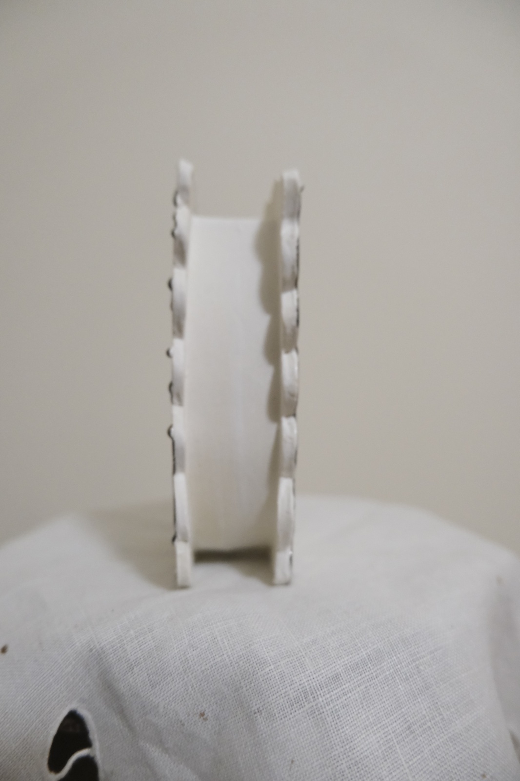 四角いスカラップ、確かにあのクリームの入ったビスケット!と思わず叫んでしまいそうになる可愛い花器です。