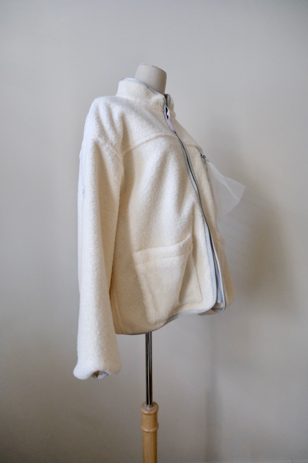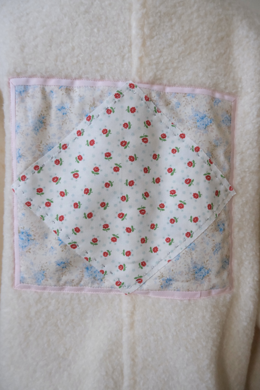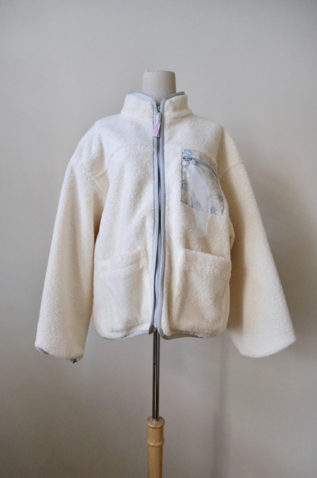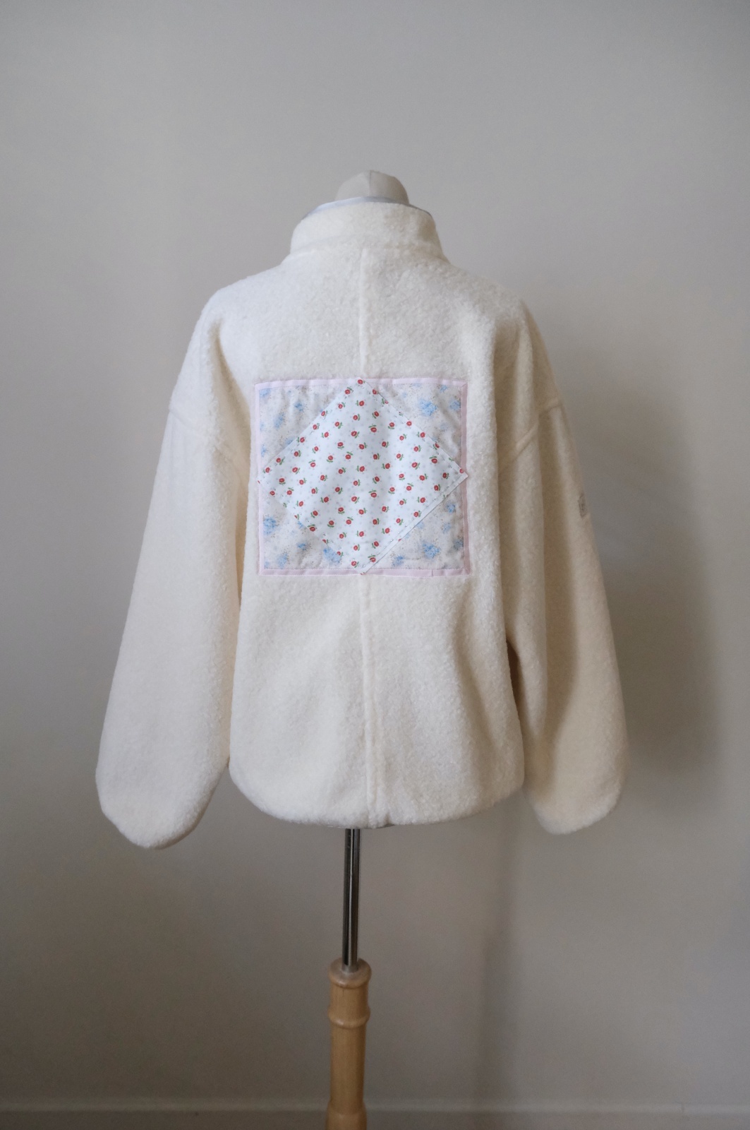 ボアフリースに小花のパッチが楽しい、フリースジャケット。