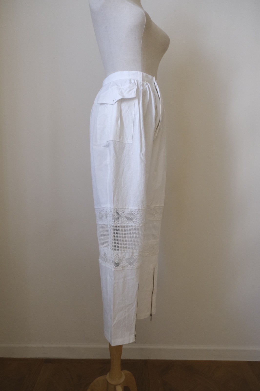 DECO depuis 1985 COTTON LINEN DYED HORSE CLOTH LACE PANTS white