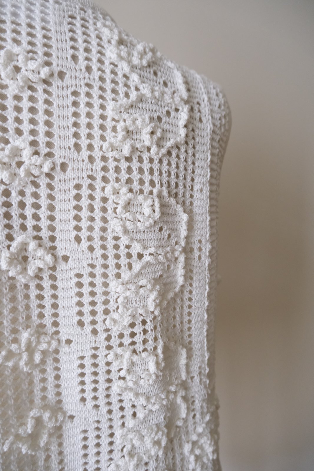 uca open-knit grid × hand popcorn stitch vest white