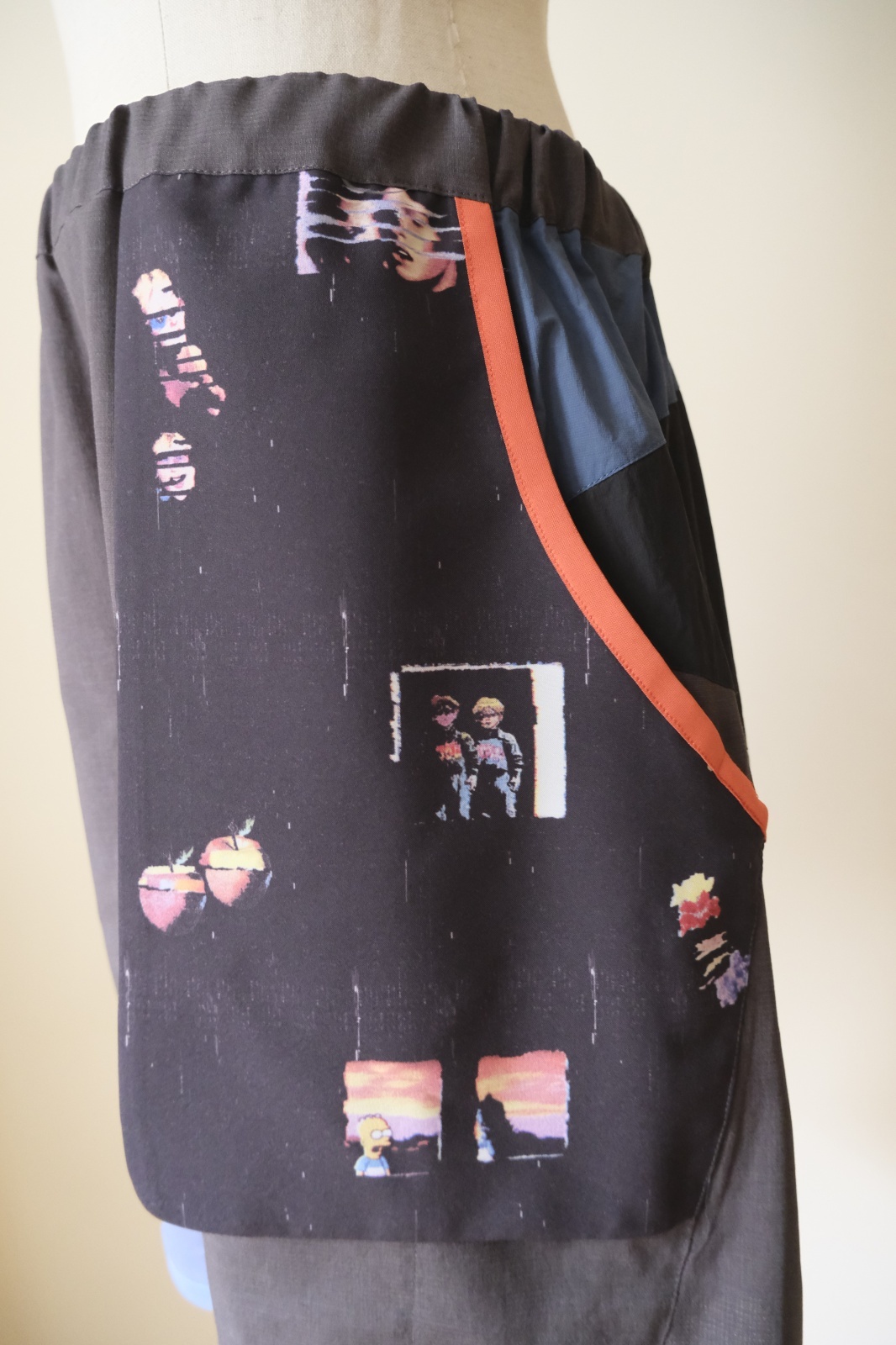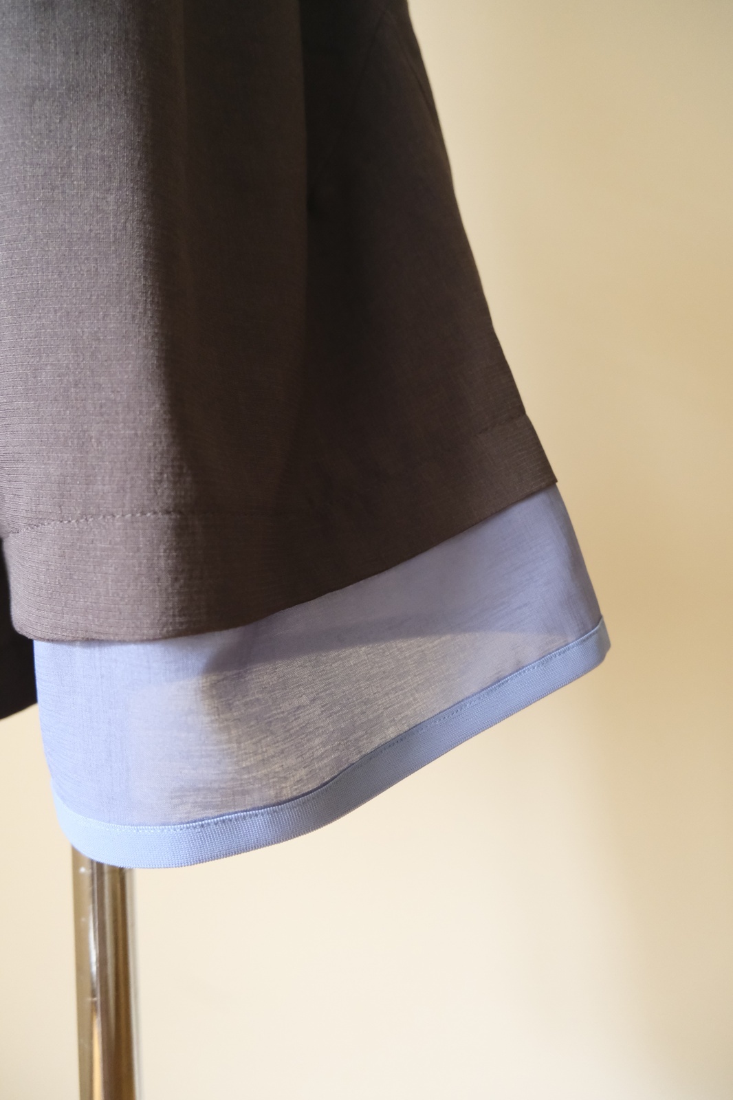 軽く涼しげな素材感とポケット口やフェイクレイヤーの配色が魅力的な夏らしいショートパンツ。