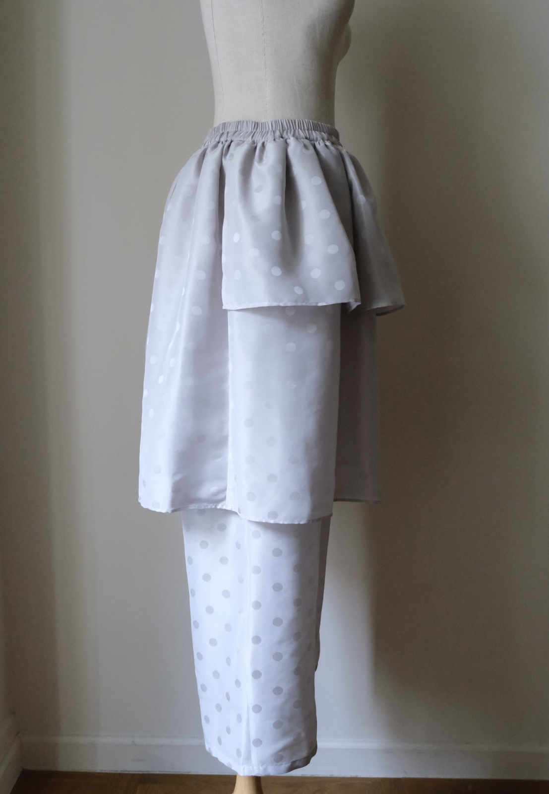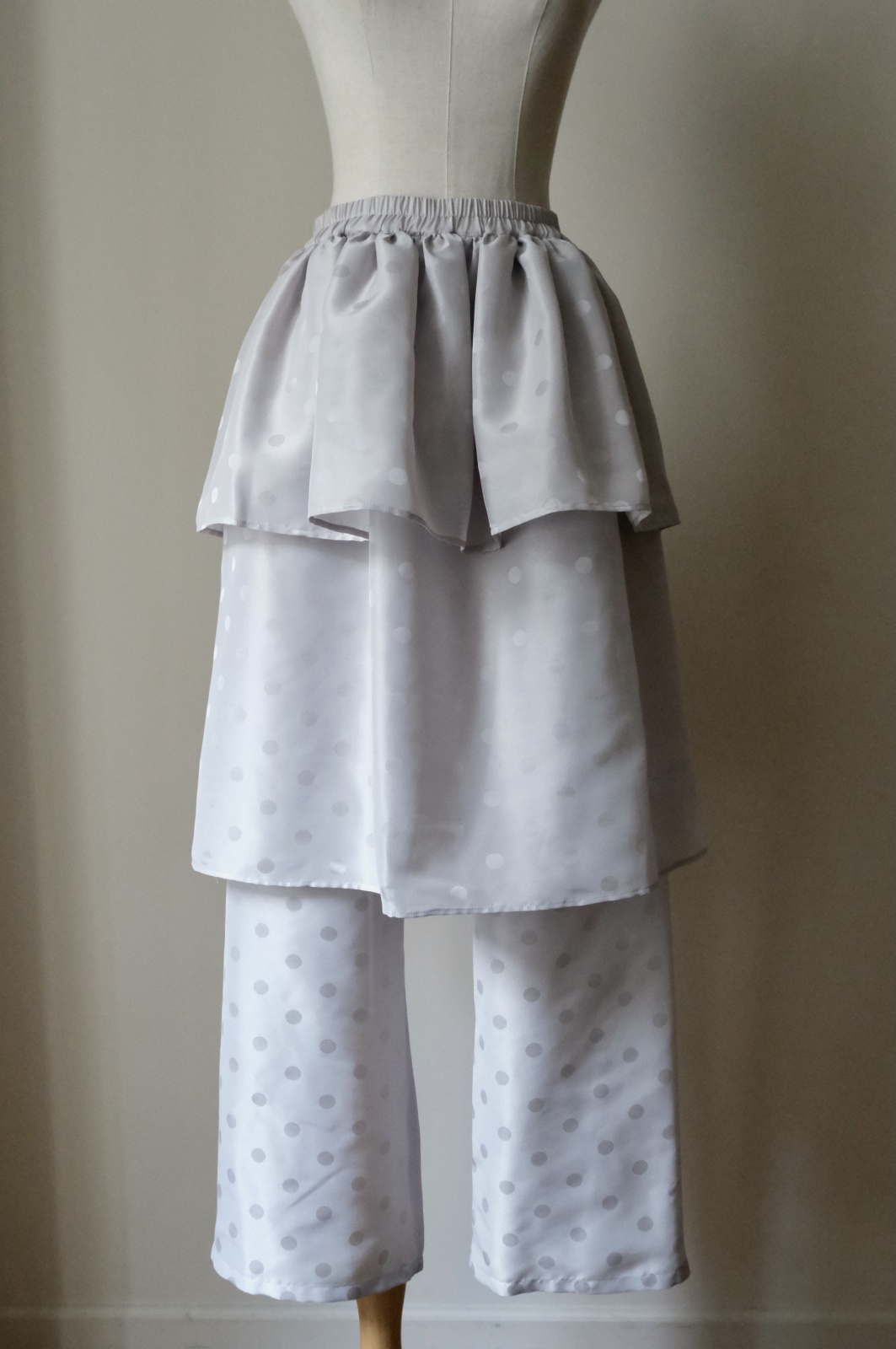 ふんわりとしたスカートを重ねたスカートパンツ。