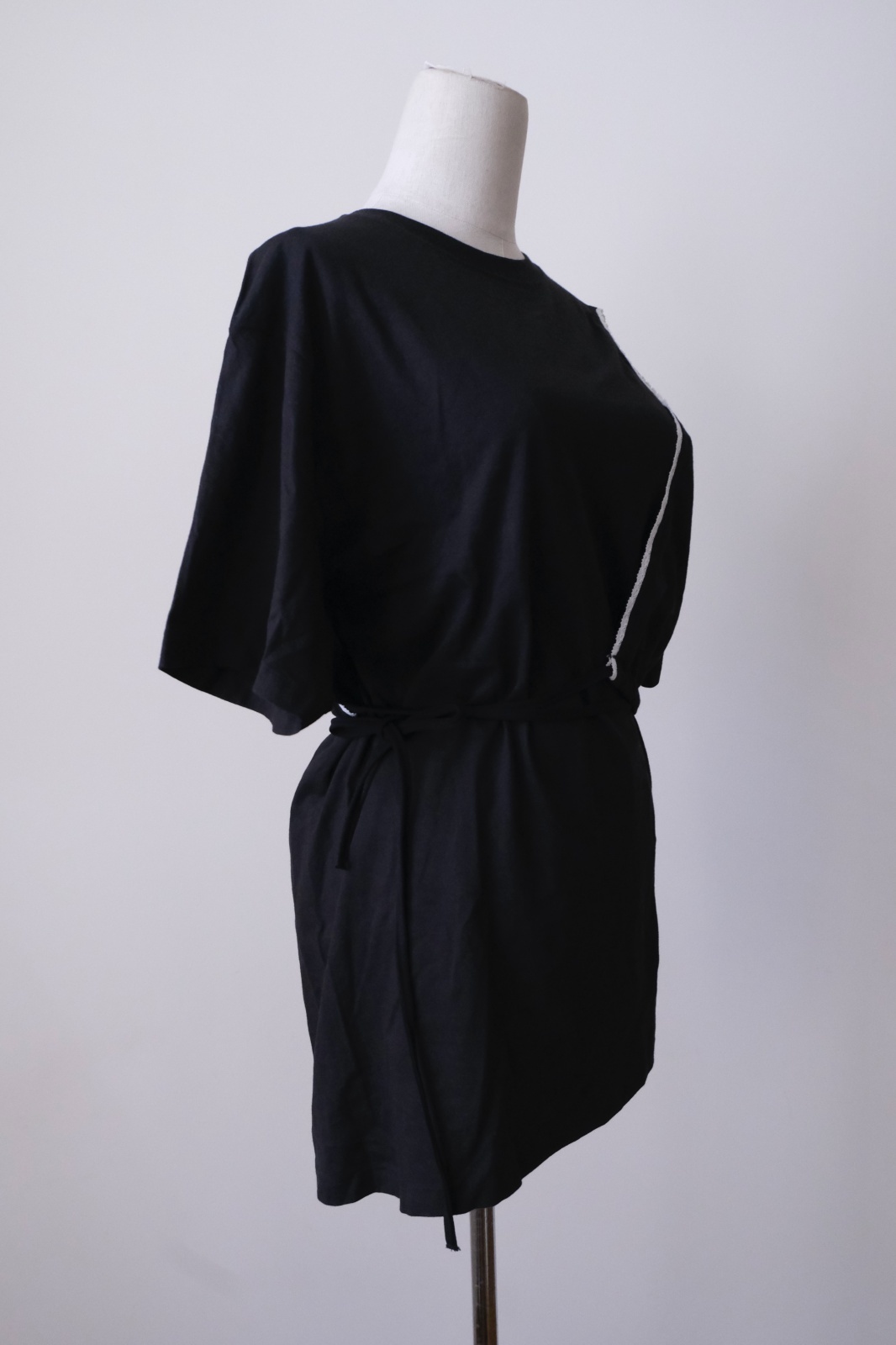 ウエストのリボンでカシュクールのように結ぶと、方とバックスタイルに少しスリットがはいって