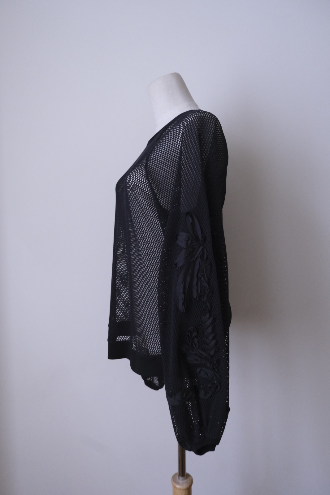 LOKITHO (ロキト) CORD EMBROIDERY MESH TOP black